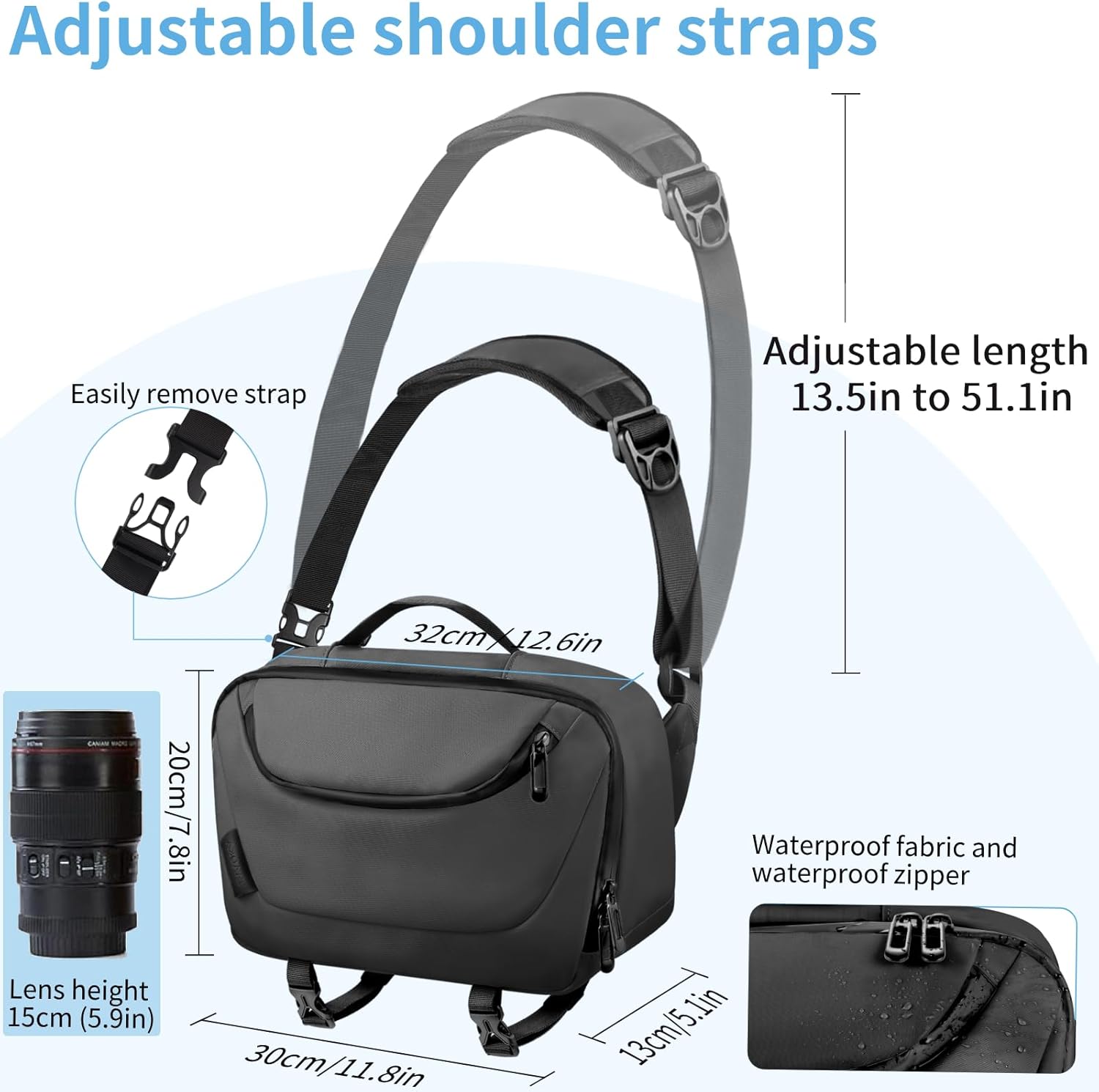 Introducing the Camera Sling Bag, a must-have accessory for photographers on the go. This waterproof camera case is designed to protect your valuable equipment from the elements, allowing you to capture stunning shots in any environment.